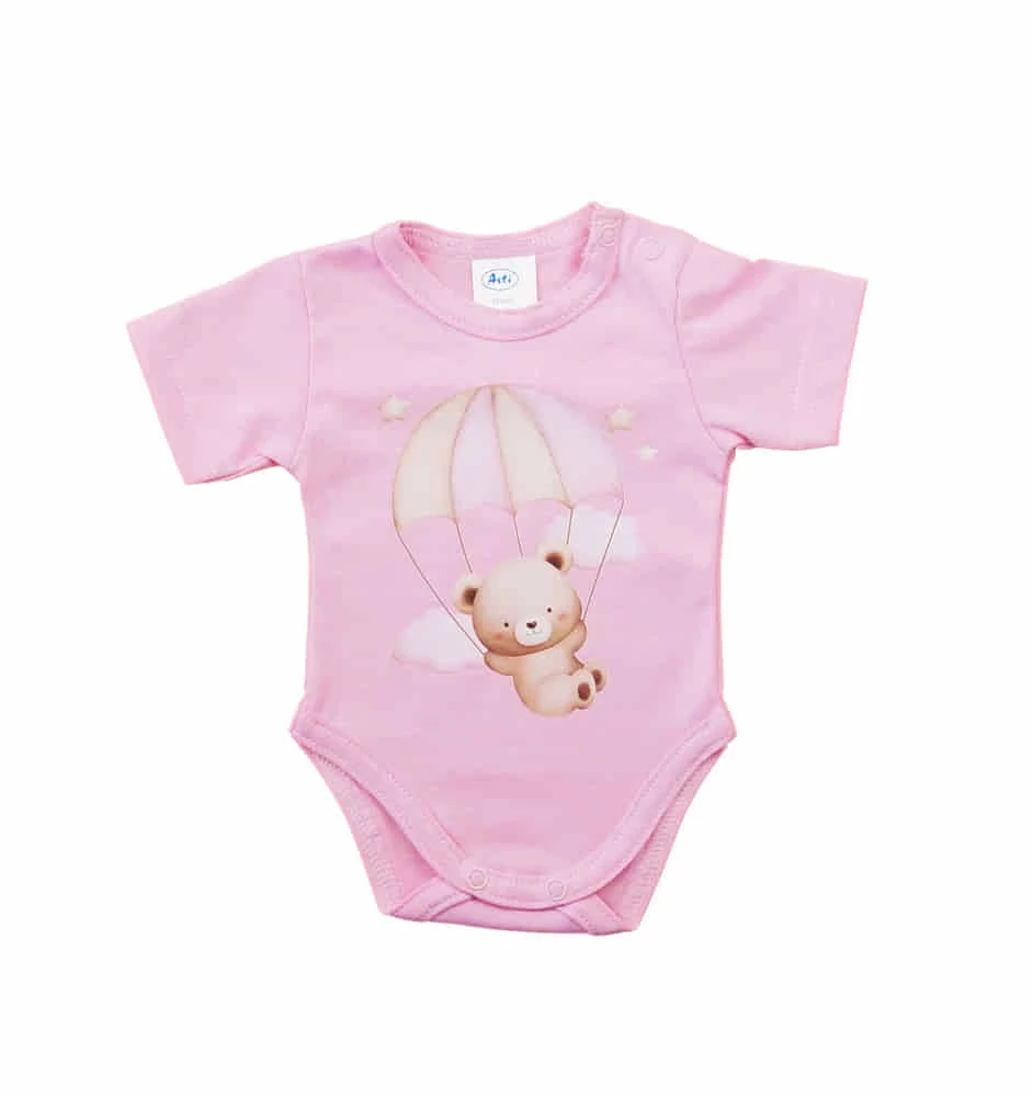 Rövid ujjú baba body A vidám színű, rövid ujjú baba body bájos mintával varázsolja még édesebbé kisbabáját. A vidám minta garantáltan mosolyt csal az arcára minden kisgyermeknek és szülőnek egyaránt. Kiváló választás lehet mindennapi viseletként, hiszen könnyen kombinálható más ruhadarabokkal. A 100% pamut anyagból készült body puha, kényelmes viseletet biztosít a baba érzékeny bőrének, miközben megóvja azt az irritációtól. A termék könnyen tisztítható, nikkelmentes patenttal készül, így az erre érzékeny babák bőrét sem irritálja. Válaszd ezt a minőségi magyar terméket, amely első osztályú minőségben készült, és öltöztesd babádat a legjobba! Minőségi magyar termék Anyaga: 100% pamut, Minőség: I. osztály