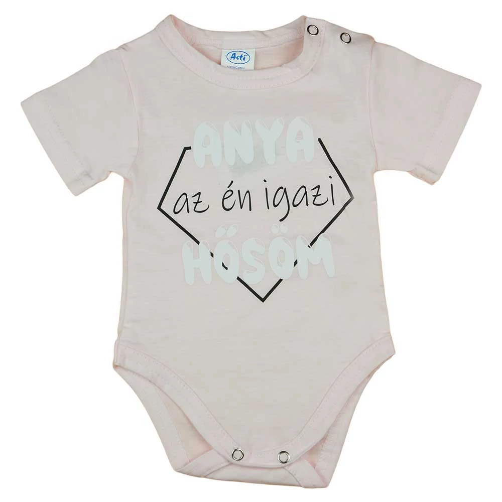 Rövid ujjú baba body "Anya az én igazi hősöm" felirattal