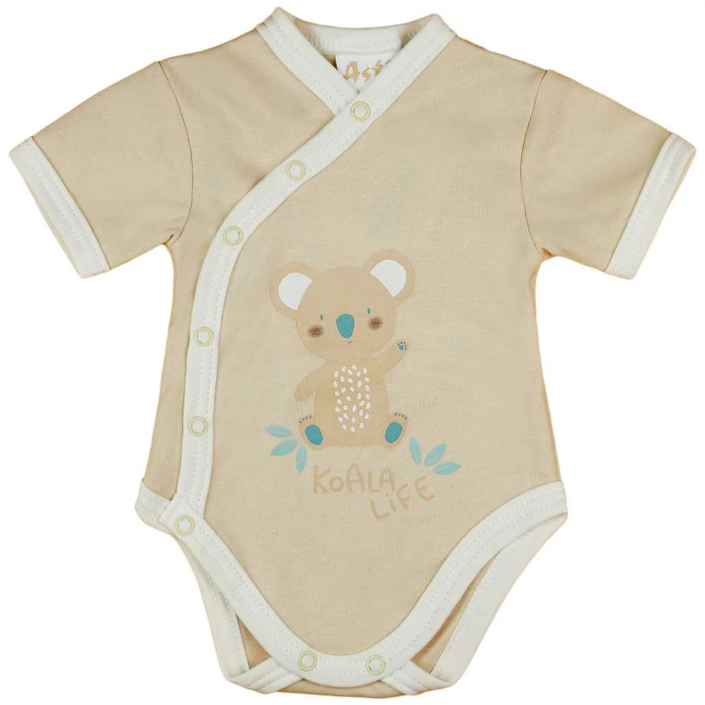 Ez a rövid ujjú baba body koalás mintával nem csak roppant aranyos, de extra kényelmes is a babáknak! Unisex designjával és bájos barna színével tökéletes választás minden kisbaba számára. A koalás minta garantáltan azonnal mosolyt csal minden arcra, míg a minőségi 100% pamut anyaga biztosítja a legpuhább érintést a baba érzékeny bőrének. Az elöl patentos kialakítás megkönnyíti a pelenkázást és öltöztetést, így több időt tölthetünk el a játék és a dédelgetés pillanataival. Különös gondot fordítottunk arra, hogy a termék nikkelmentes patenttal készüljön, így azok a babák is biztonsággal viselhetik, akik érzékenyek a nikkelre. Ez a baba body Magyarországon készült, az Andrea Kft. gondos odafigyelésével és magas minőségi elvárásaival. Büszkék vagyunk arra, hogy ezt a terméket itthon gyártottuk, és hogy a magyar babák a legjobb minőségű ruházatot viselhetik. Válaszd ezt a gyönyörű koalás mintás body-t a babádnak, és örömet szerezhetsz neki a kényelem és a stílus terén egyaránt!