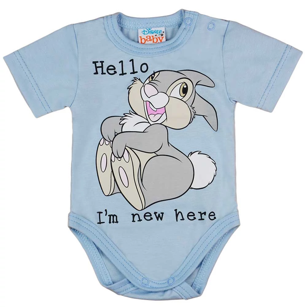 A varázslatos Thumper nyuszi mintával díszített rövid ujjú baba bodyt kínálunk, amely minden kisfiú számára tökéletes választás. Képzelje el, mennyire boldoggá teszi a kicsit, amikor viseli ezt a színes, vidám mintával díszített bodyt! Az eredeti Disney terméket Magyarországon, a minőségi Andrea Kft. gyártja. Az 100% pamut anyag garantálja a puhaságot és a kényelmet a baba érzékeny bőrének, míg a nikkelmentes patentok biztosítják, hogy a termék nem vált ki allergiás reakciót. Ez a baba body nem csak stílusos, de praktikus is - a vállon lévő patentok segítségével könnyedén fel- és levehető. A minőségi magyar terméket eredeti Disney mintával ajánljuk, hogy a kisfiúk napja még vidámabb legyen!