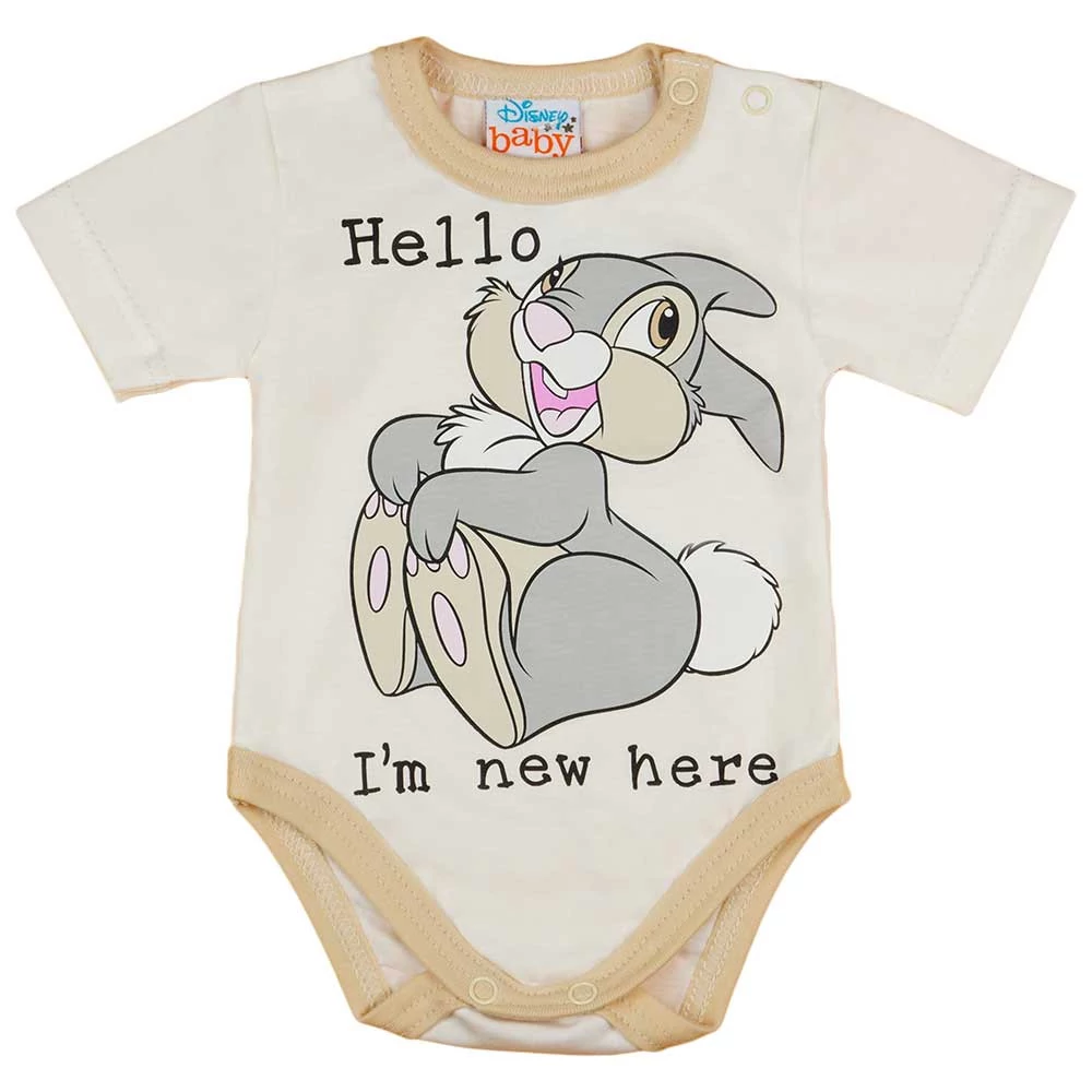 A Thumper nyuszi mintával ellátott rövid ujjú baba body kényelmes viselet kisbabád számára, és garantáltan elvarázsolja a Disney rajongókat. A natúrszínű, 100% pamut anyagból készült body egyszerre puha és strapabíró - tökéletes választás a mindennapokra és a különleges alkalmakra egyaránt. A vállon található nikkelmentes patentok segítségével könnyedén felvehető és levehető, így a pelenkázás sem jelent majd gondot. A minőségi magyar termék, amelyet a hazai Andrea Kft. gyárt, biztosan hosszú ideig fogja kísérni gyermeked növekedését és fejlődését. A Thumper nyuszi mintával nyomott baba body nem csak kényelmes viseletet, de vidám pillanatokat is ígér számotokra.