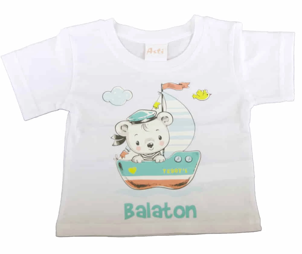 Ez a rövid ujjú póló tökéletes választás a kis hajósok számára. A puha, bőrbarát 100% pamut anyag gondoskodik arról, hogy kicsinyünk mindig kényelmesen és szabadon mozogjon. A póló fehér színe igazán friss és tiszta látványt nyújt, míg a Balatonos hajós maci mintája mindenkit elvarázsol. Klasszikus szabása pedig garantálja, hogy soha nem megy ki a divatból. Ráadásul könnyen kezelhető és jól mosható, így színét és formáját hosszú távon is megőrzi. Büszkén mondhatjuk, hogy ez a minőségi termék hazánkban készült, és az I. osztályú minőséget képviseli. Adjunk a kicsiknek egy kis Balaton-varázslatot minden nap!
