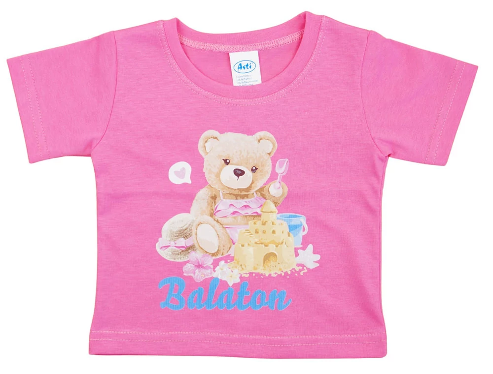 Rövid ujjú Balatonos macis póló Ez a rövid ujjú póló tökéletes választás a kis strandolók számára. A puha, bőrbarát 100% pamut anyag gondoskodik arról, hogy gyermekünk mindig kényelmesen és szabadon mozogjon. A póló pink színe igazán friss és tiszta látványt nyújt, míg a Balatonos maci mintája mindenkit elvarázsol. Klasszikus szabása pedig garantálja, hogy soha nem megy ki a divatból. Ráadásul könnyen kezelhető és jól mosható, így színét és formáját hosszú távon is megőrzi. Büszkén mondhatjuk, hogy ez a minőségi termék hazánkban készült, és az I. osztályú minőséget képviseli. Adjunk a kicsiknek egy kis Balaton-varázslatot minden nap!