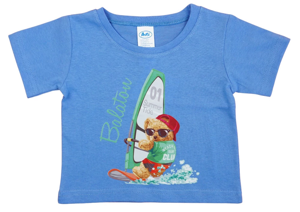 Rövid ujjú Balatonos macis póló Ez a rövid ujjú póló tökéletes választás a kis strandolók számára. A puha, bőrbarát 100% pamut anyag gondoskodik arról, hogy gyermekünk mindig kényelmesen és szabadon mozogjon. A póló kék színe igazán friss és tiszta látványt nyújt, míg a Balatonos szörför maci mintája mindenkit elvarázsol. Klasszikus szabása pedig garantálja, hogy soha nem megy ki a divatból. Ráadásul könnyen kezelhető és jól mosható, így színét és formáját hosszú távon is megőrzi. Büszkén mondhatjuk, hogy ez a minőségi termék hazánkban készült, és az I. osztályú minőséget képviseli. Adjunk a kicsiknek egy kis Balaton-varázslatot minden nap!