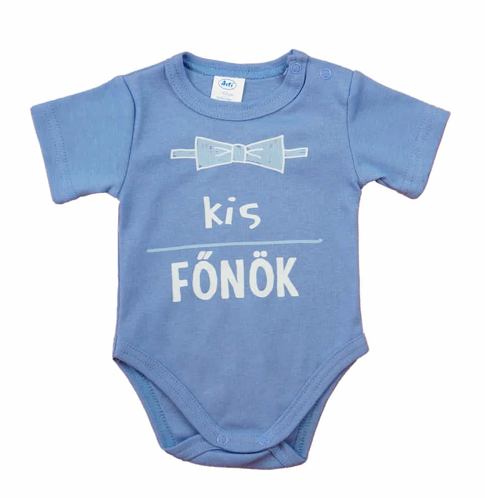 Feliratos rövid ujjú baba body Ezzel a vállon patentos baba bodyval a kisbabád mindig stílusos lesz. A body feliratos, ami egyszerre vicces és aranyos. A 100% pamut anyaga garantálja a kényelmet, és a nikkelmentes patentoknak köszönhetően nem kell aggódnod az allergiás reakciók miatt. Gondosan tervezett és készített termék, így biztos lehetsz benne, hogy a legjobbat kapod. A minőségi magyar termék, ami tökéletes választás minden unisex babáknak. Tökéletes választás, ha szeretnél egy igazán minőségi és kényelmes ruhadarabot a babádnak. Minőségi magyar termék Anyaga: 100% pamut, Minőség: I. osztály