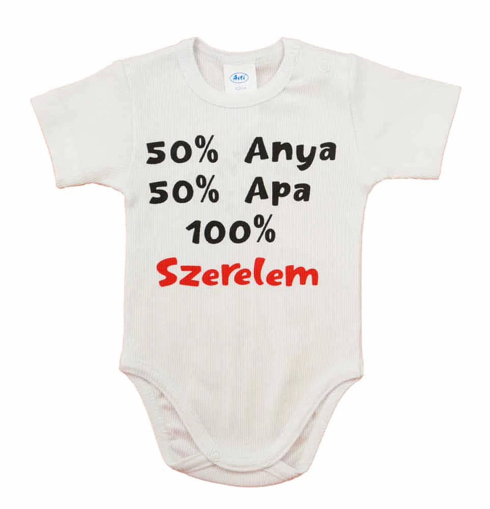 Feliratos rövid ujjú baba body Ezzel a vállon patentos baba bodyval a kisbabád mindig stílusos lesz. A body feliratos, ami egyszerre vicces és aranyos. A nikkelmentes patentoknak köszönhetően nem kell aggódnod az allergiás reakciók miatt. Gondosan tervezett és készített termék, így biztos lehetsz benne, hogy a legjobbat kapod. A minőségi magyar termék, ami tökéletes választás minden unisex babáknak. Tökéletes választás, ha szeretnél egy igazán minőségi és kényelmes ruhadarabot a babádnak. Minőségi magyar termék Anyaga: 90% pamut – 10% lycra Minőség: I. osztály