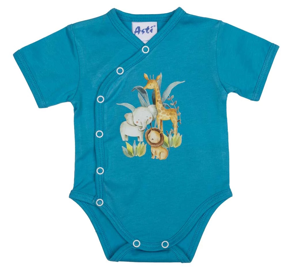 Rövid ujjú elöl patentos baba body szafaris mintával Vidd magaddal az afrikai szafarit minden nap! Ez a rövid ujjú baba body vidám szafaris mintával azonnal feldobja a kis lurkó napját. Készült a legpuhább, 100% pamut anyagból, hogy garantáltan kényelmes legyen a viselése, akár egész nap. Az elöl található praktikus patentok egyszerűbbé teszik a pelenkázást és a öltöztetést. Nikkelmentes kialakításának köszönhetően pedig az érzékeny bőrű babák is nyugodtan hordhatják. Minőségi magyar termék, mely a legjobb választás a kisbabád számára. A cuki szafaris minta mellett nem lehet elmenni szó nélkül. Ne hagyd ki ezt a darabot, amely tökéletesen illik a babagardrób minden részéhez! Minőségi magyar termék Anyaga: 100% pamut, Minőség: I. osztály