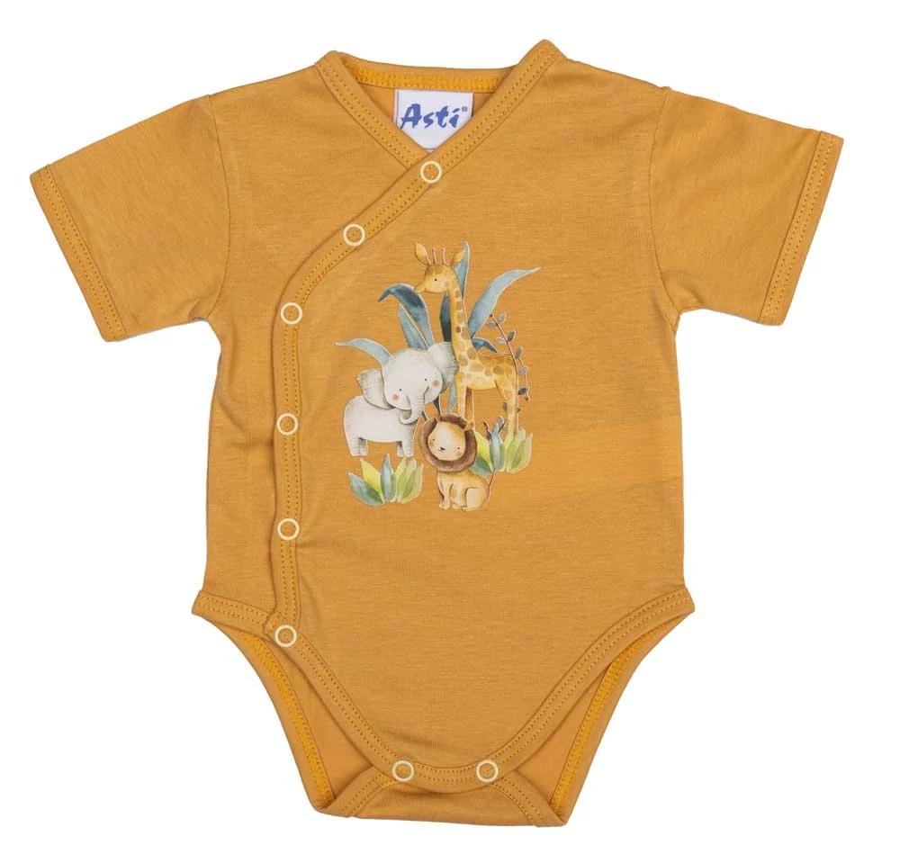 Rövid ujjú elöl patentos baba body szafaris mintával Vidd magaddal az afrikai szafarit minden nap! Ez a rövid ujjú baba body vidám szafaris mintával azonnal feldobja a kis lurkó napját. Készült a legpuhább, 100% pamut anyagból, hogy garantáltan kényelmes legyen a viselése, akár egész nap. Az elöl található praktikus patentok egyszerűbbé teszik a pelenkázást és a öltöztetést. Nikkelmentes kialakításának köszönhetően pedig az érzékeny bőrű babák is nyugodtan hordhatják. Minőségi magyar termék, mely a legjobb választás a kisbabád számára. A cuki szafaris minta mellett nem lehet elmenni szó nélkül. Ne hagyd ki ezt a darabot, amely tökéletesen illik a babagardrób minden részéhez! Minőségi magyar termék Anyaga: 100% pamut, Minőség: I. osztály