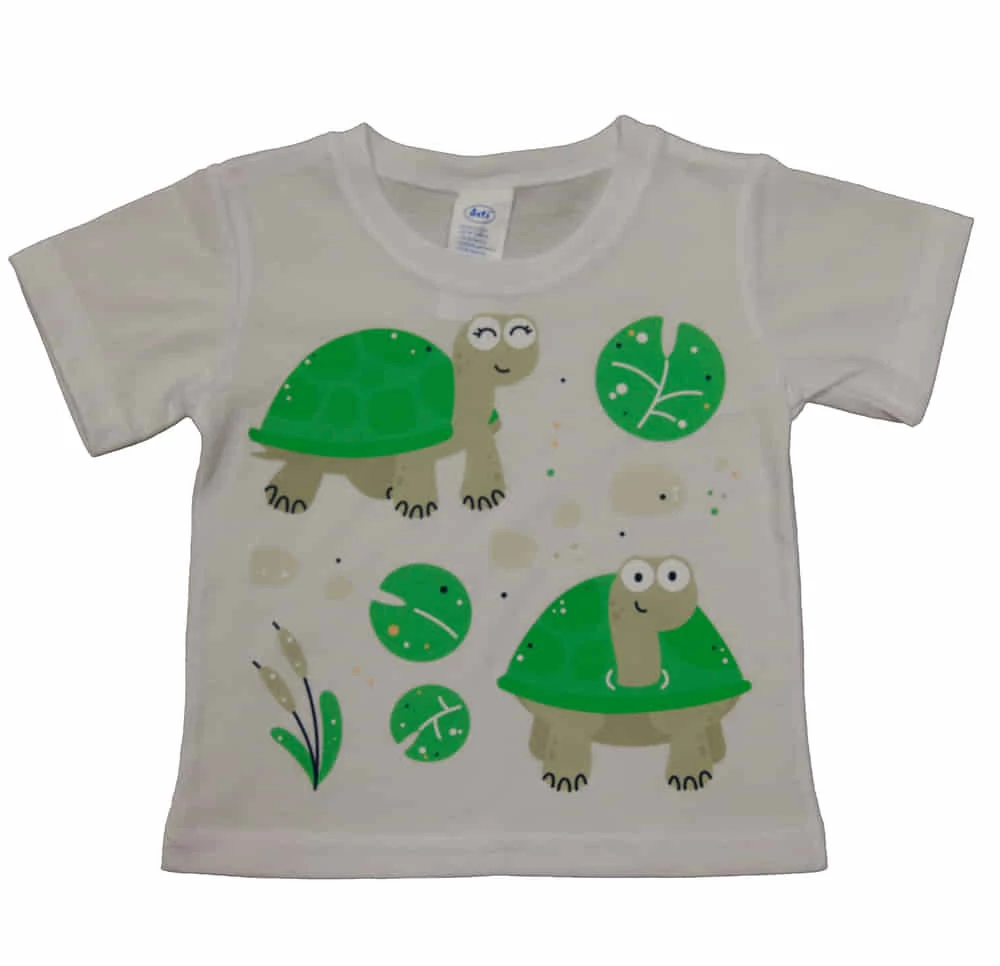 Az Ön kis hercegének stílusos és kényelmes viseletre van szüksége a melegebb napokon? Akkor válassza ezt a fehér, rövid ujjú pólót, melyet egy aranyos teknős minta díszít! A puha, bőrbarát 100% pamut anyag gondoskodik a kényelemről, míg a klasszikus szabás tökéletesen passzol minden típusú alsóneműhöz. A póló könnyen kezelhető, jól mosható, szín- és formaálló - minőségi magyar termék, amely garantáltan hosszú ideig megőrzi frissességét és vonzó megjelenését. Adja hozzá gardróbjához ezt a stílusos, teknős mintás pólót, és hagyja, hogy fiának öltözködése minden nap örömteli legyen!