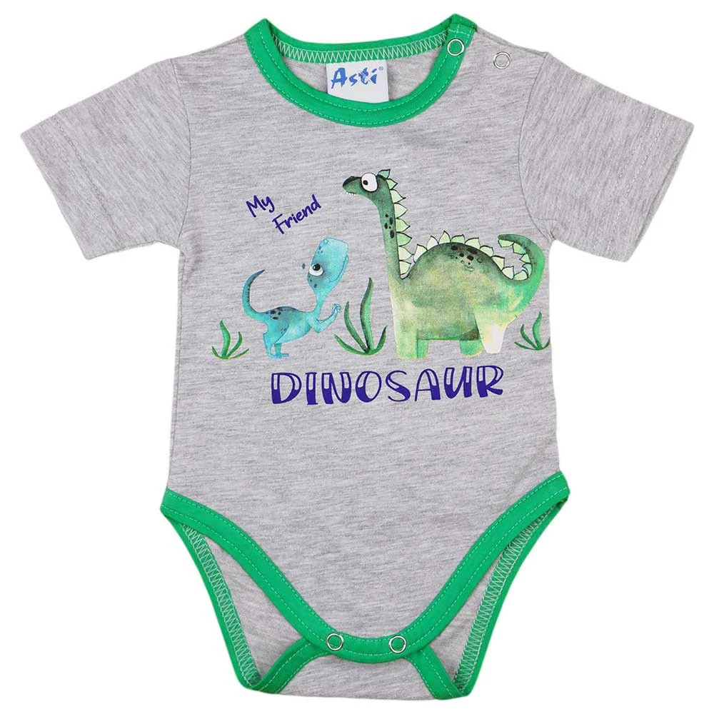Rövid ujjú kisfiú baba body dinós mintával szürke
