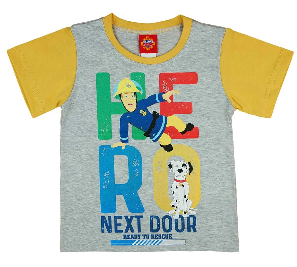 Rövid ujjú kisfiú póló Sam a tűzoltó mintával