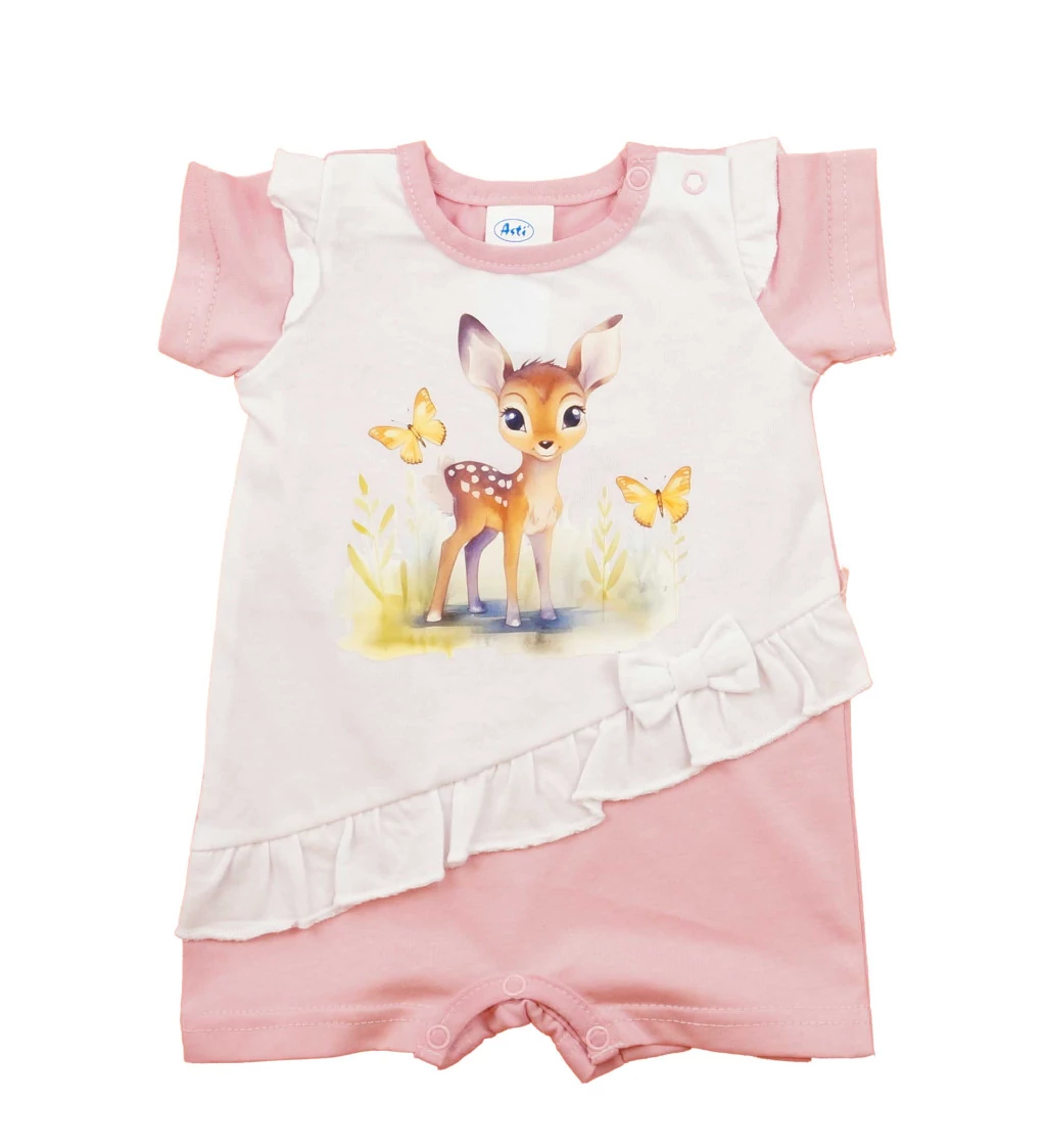 Rövid ujjú kislány baba napozó - őzike mintával