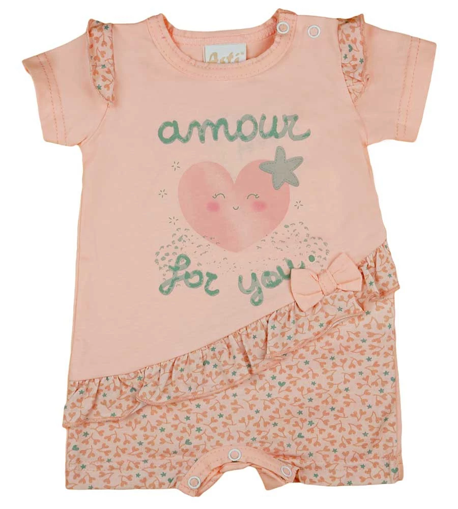 Rövid ujjú kislány baba napozó szívecskés mintával