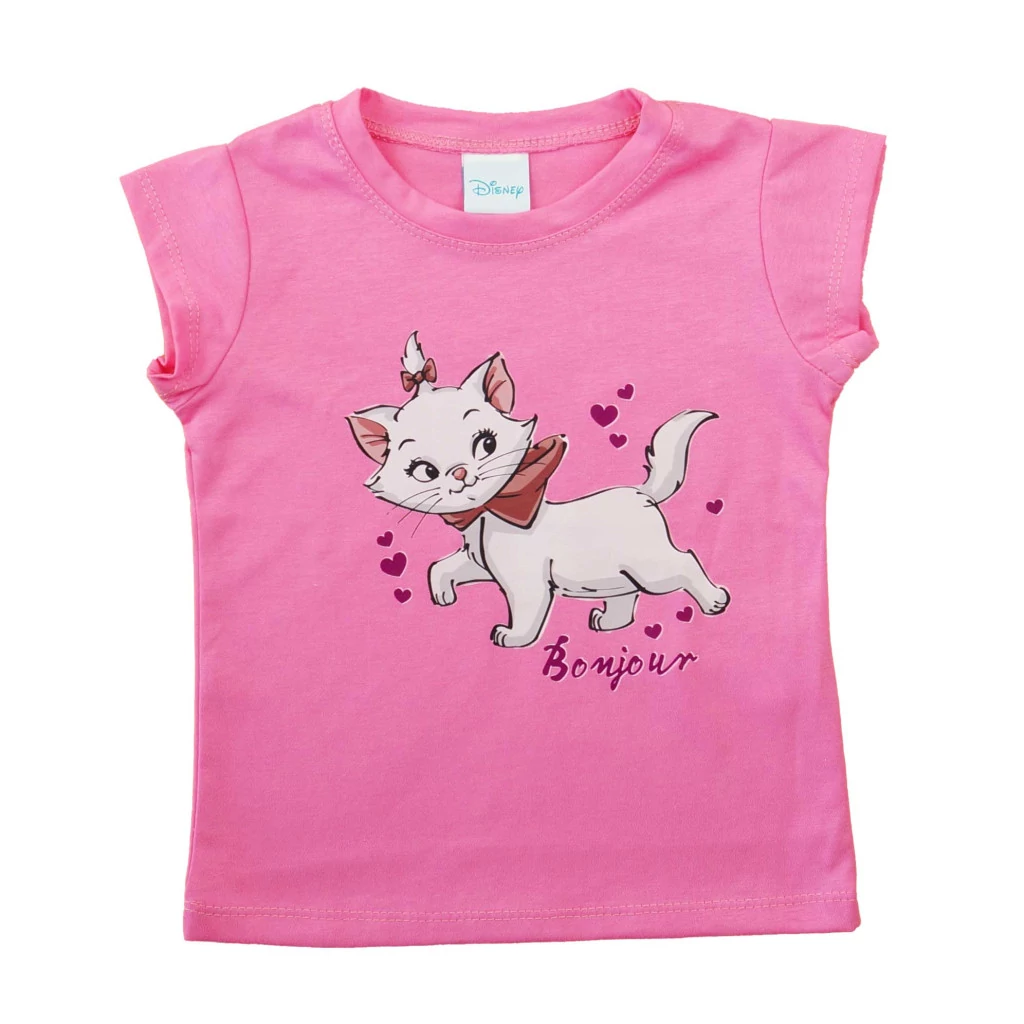 Rövid ujjú kislány póló Marie cica mintával Eredeti Disney termék Rövid ujjú kislány póló enyhén rugalmas pamut anyagból. Praktikus alapdarabja kislányunk ruhatárának, amit nadrággal, szoknyával is viselhet. Az elején aranyos Marie cica mintával nyomva, ami garantálja, hogy kislányunk is szeretni fogja. Minőségi, könnyen kezelhető, szín- és formatartó anyagból készült. Minőségi magyar termék Anyaga: 100% pamut, Minőség: I. osztály