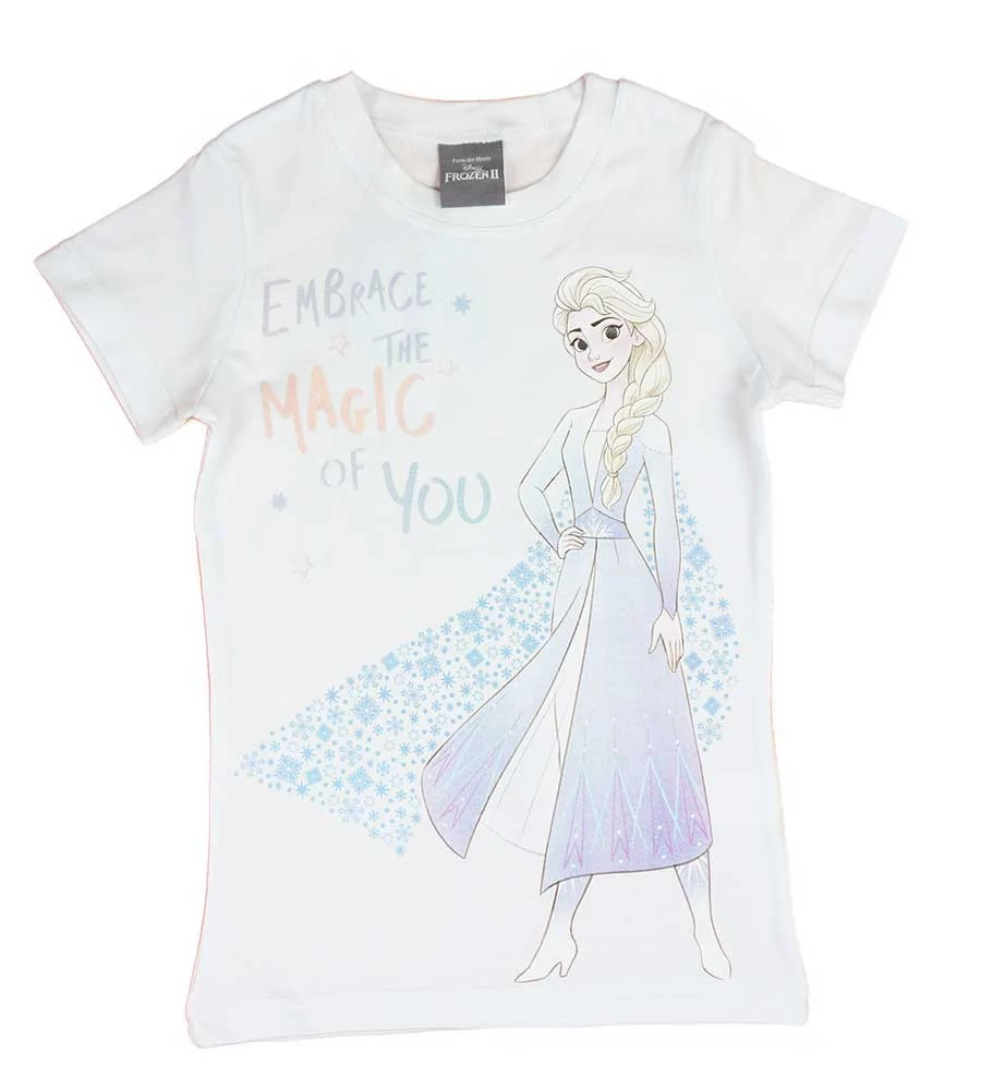 Fedezze fel a varázslatos Jégvarázs világát ezzel a gyönyörű, rövid ujjú lány pólóval. Az eredeti Disney termék fehér színben pompázik, melyen Elza hófehér mintája tündököl, igazán mesebeli hangulatot kölcsönözve viselőjének. A póló vékony, 100% pamut anyagból készült, ami tökéletes választás a meleg nyári napokra. Minőségi magyar termék, amely garantáltan első osztályú komfortérzetet biztosít kislányának. Ezzel a pólóval minden nap egy kis varázslat lesz!
