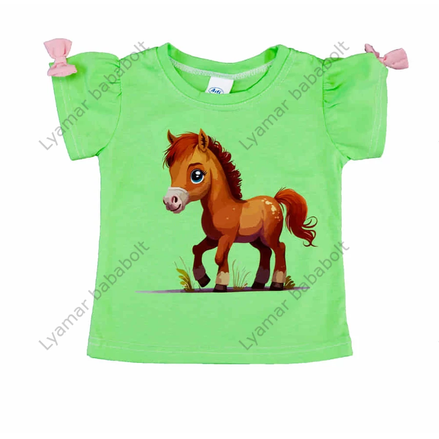Fedezze fel a gyönyörű rövid ujjú lány pólót, amelynek színe a friss kiwi színét idézi. A pólón szereplő lovakkal díszített minta garantáltan minden kislány kedvence lesz. A klasszikus szabású póló anyaga puha, bőrbarát, 100% pamut, ami kiváló komfortérzetet biztosít viselője számára. Az anyag könnyű kezelhetősége és jól moshatósága miatt a színek hosszú ideig élénkek maradnak, a forma pedig megtartja eredeti állapotát. Ráadásul mindezt magyarországi gyártás és I. osztályú minőség jellemzi. Adja hozzá a szekrényéhez ezt a gyönyörű darabot, amely nem csak divatos, hanem rendkívül kényelmes is.