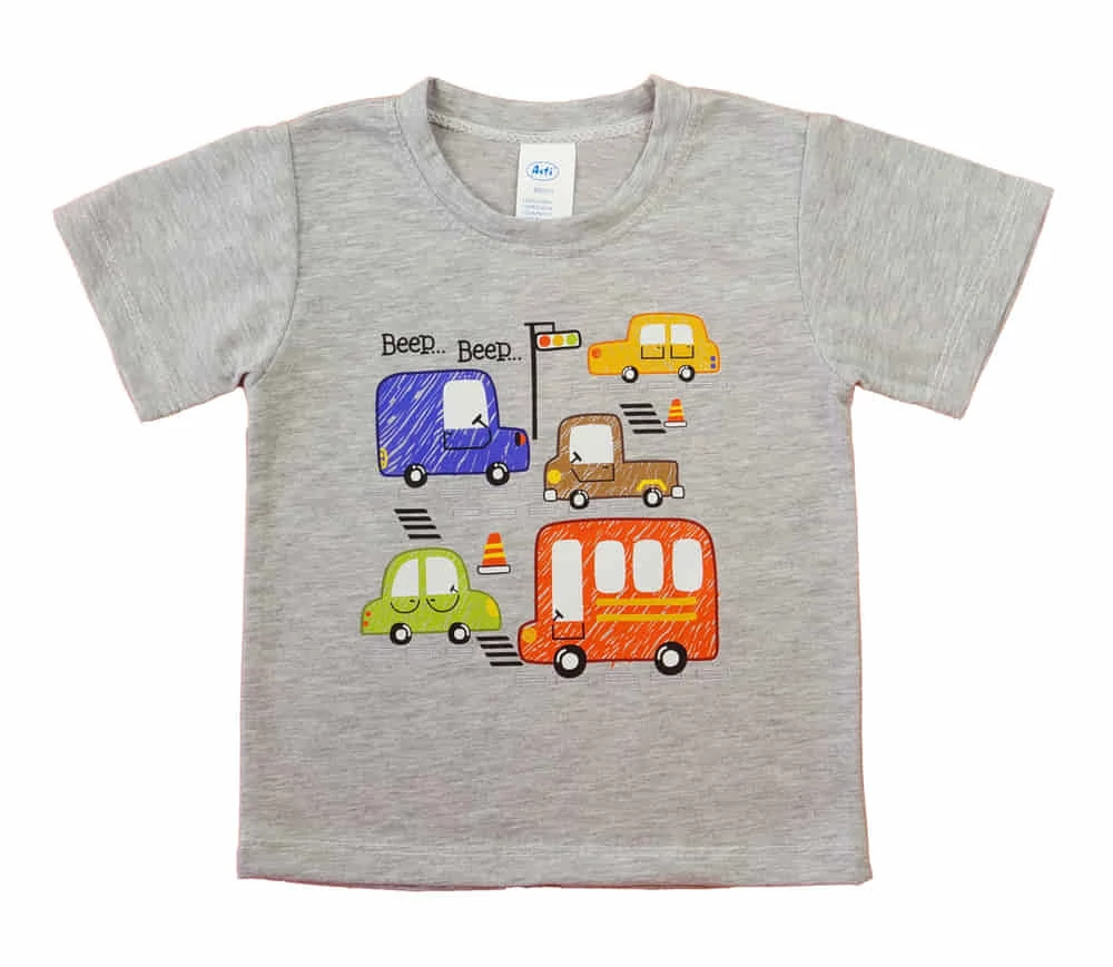 Rövid ujjú póló, Autós mintával Ez a rövid ujjú kisfiú póló kiváló minőségű, 100% pamut anyagból készült, amely kellemesen puha és légáteresztő, így egész nap kényelmes viseletet biztosít. Klasszikus szabása és laza fazonja miatt könnyű benne a mozgás, így ideális aktív gyerekek számára. Formatartó kialakítása garantálja, hogy mosás után is megőrzi alakját és színét. A vidám minta játékosságot csempész a mindennapi öltözködésbe. Könnyen kezelhető és strapabíró, így tökéletes választás minden kis kalandor számára! Anyaga: 100% Pamut Minőség: I. osztály Minőségi magyar termék!