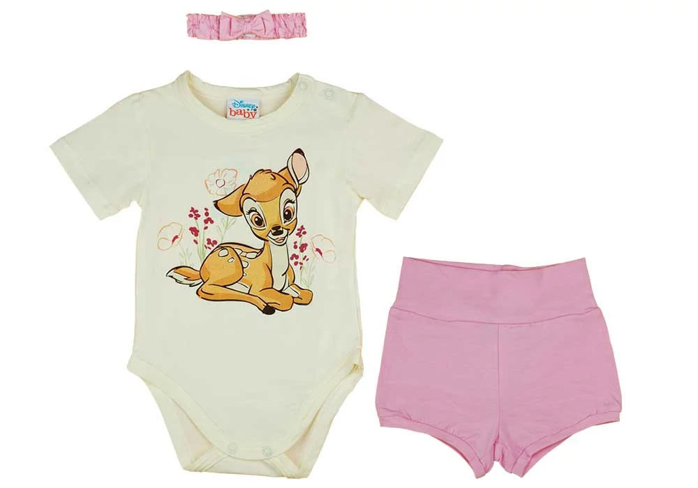 Rövidnadrágos kislány babaruha szett Bambi mintával