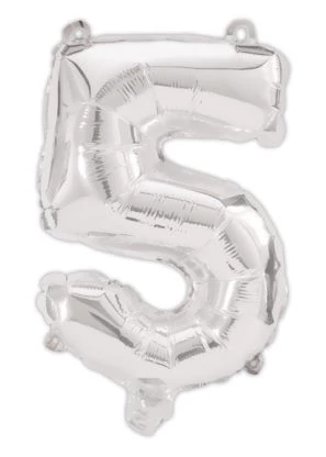 Silver, Ezüst 5-ös szám fólia lufi 95 cm