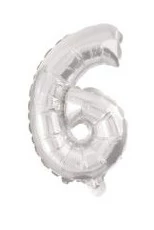 Silver, Ezüst 6-os szám fólia lufi 10 cm