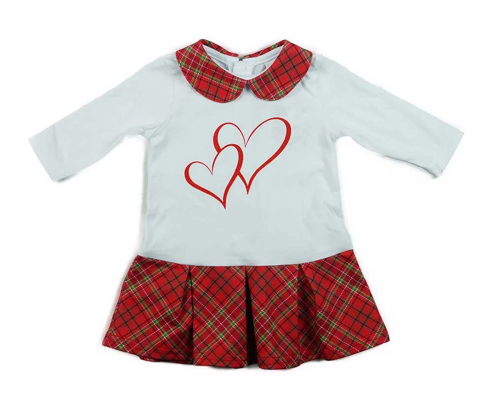 Szivecskés mintával nyomott hosszú ujjú galléros baba ruha