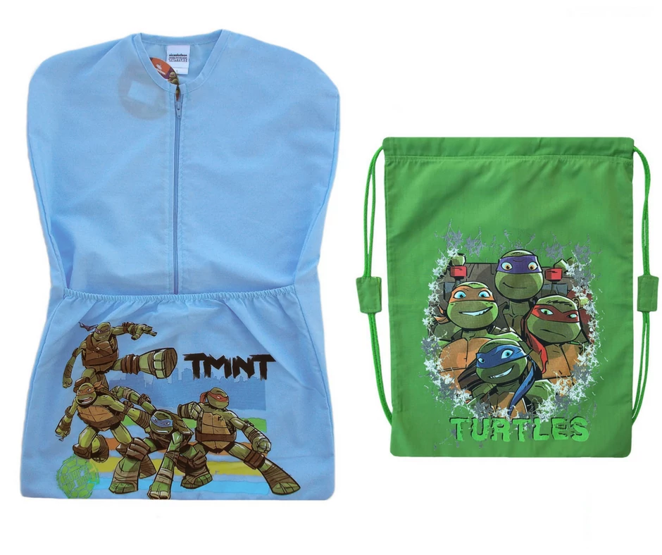 -1 db Tini Ninja cipzáros, zsebes, oviszsák (60*40 cm), mely vállfával akasztható fel,