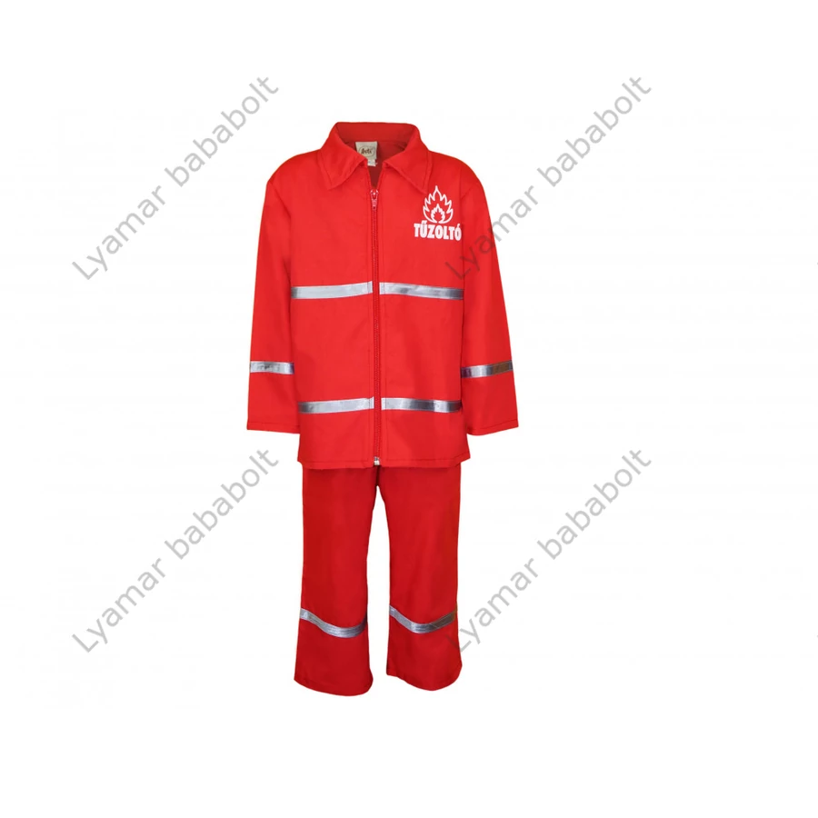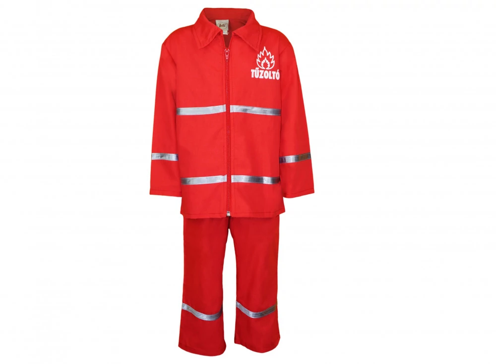 A piros színű, tűzoltó jelmez garantáltan a Farsang sztárja lesz! A két részes, 100% pamutból készült szett egész nap kényelmes viseletet biztosít. A szett egy gumis derekú, egyenes szárú nadrágot, és egy cipzáras, galléros felsőt tartalmaz. Mindkét darabon rávarrt ezüst színű csíkok díszítenek, melyek szemet gyönyörködtető kontrasztot nyújtanak a piros alapszín mellett. A felsőn, mell részen és a hátán tűzoltó felirat teszi még hitelesebbé a jelmezt. Minőségi, I. osztályú termék, melyet a magyar Andrea Kft. gyártott. Büszkén mondhatjuk, hogy ez egy igazi magyar termék!