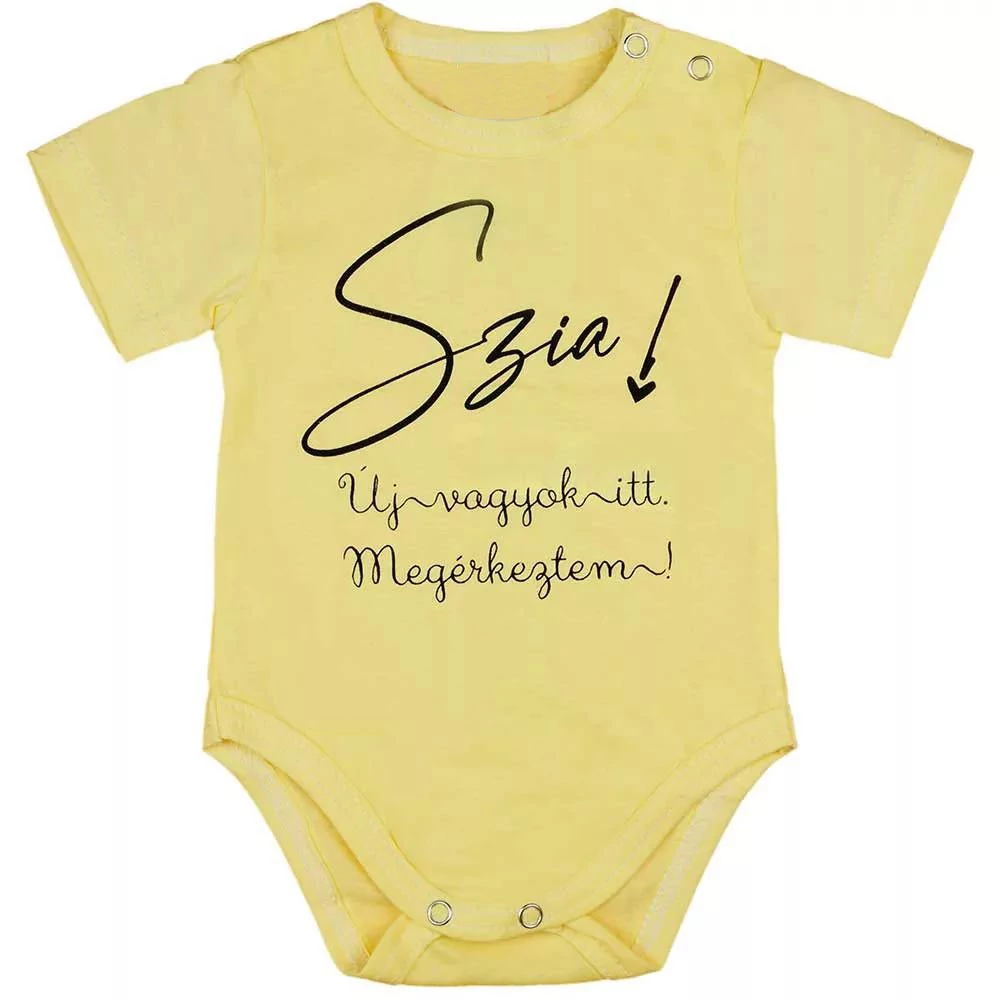 Új vagyok, megérkeztem feliratos rövid ujjú baba body