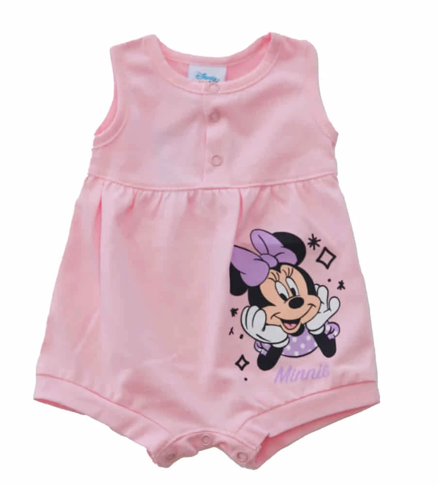 Ebben a rózsaszín, ujjatlan baba napozóban minden napja vidám lesz a kisbabának! Eredeti Disney termék, melyen a kedves Minnie egér vidám mintája található, garantáltan mosolyt csal az arcokra. A napozó az ellenállhatatlanul cuki megjelenése mellett különösen kényelmes is, köszönhetően a minőségi, enyhén rugalmas, bababarát pamut anyagának, mely akár egész napos viseletet biztosít. A napozó elején található patentok megkönnyítik az öltöztetést, míg a lába közötti patentok a gyors peluscserében lesznek segítségedre. A forró nyári napokon ez a napozó tökéletes választás lesz. Minőségi magyar termék, melyet jól mosható, szín- és formatartó anyagból készítettünk. A termék nikkelmentes patenttal készül, tehát nem vált ki allergiás reakciót az erre érzékeny babáknál. Anyaga: 100% pamut. Minőség: I. osztály.