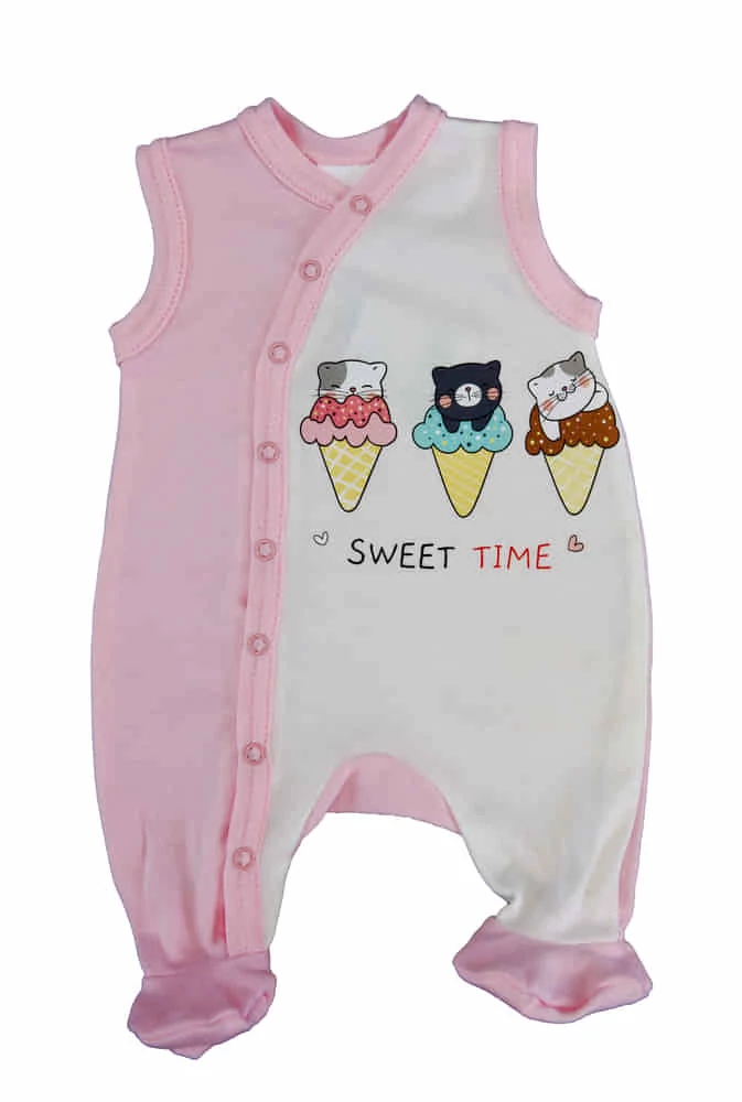 Egy igazán stílusos kiegészítő a kislányok ruhatárában, ez az ujjatlan rugdalózó ruha, amely magával ragadó cicás-fagyis mintával díszített. Rózsaszín színének köszönhetően igazán lányos és kedves darab. A ruha elől és a lábközöttben is patentos kialakítást kapott, ami megkönnyíti az öltözködést és a pelenkázást is. A rugdalózó anyaga 100% baba-barát pamut, amely könnyű és vékony, így a nagy nyári melegben is tökéletes viseletet biztosít. Hűvösebb időben pedig egyszerűen párosítható egy kombival, így egész évben hordható. Ne aggódj a tisztítás miatt sem: a rugdalózó könnyen mosható és szín- és formatartó, így hosszú időn keresztül megőrzi eredeti szépségét. A minőségi magyar termék pedig minden bizonnyal a babák és a szülők kedvence lesz. Anyaga: 100% pamut Minőség: I. osztály