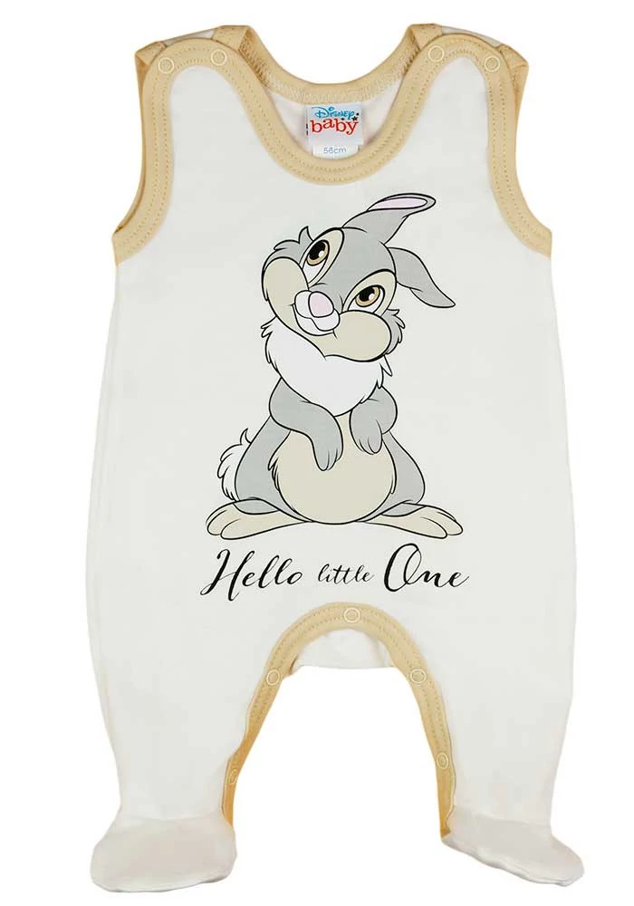 Csodálatos Thumper nyuszi mintával ellátott ujjatlan baba rugdalózó várja a kicsiket, hogy vidám és kényelmes legyen minden pillanatuk. Az eredeti Disney termék garantálja a kiváló minőséget és a hosszú élettartamot. Az ujjatlan kialakítás tökéletes a meleg, nyári napokra, a vállon lévő patentok pedig megkönnyítik az öltöztetést. A magyar gyártású, 100% pamutból készült rugdalózó I. osztályú, ami a legmagasabb minőségi kategória. A termékben használt patentok nikkelmentesek, így az arra érzékeny babák bőre is biztonságban van. Édes és praktikus - ez a rugdalózó a tökéletes választás minden kisbabának.