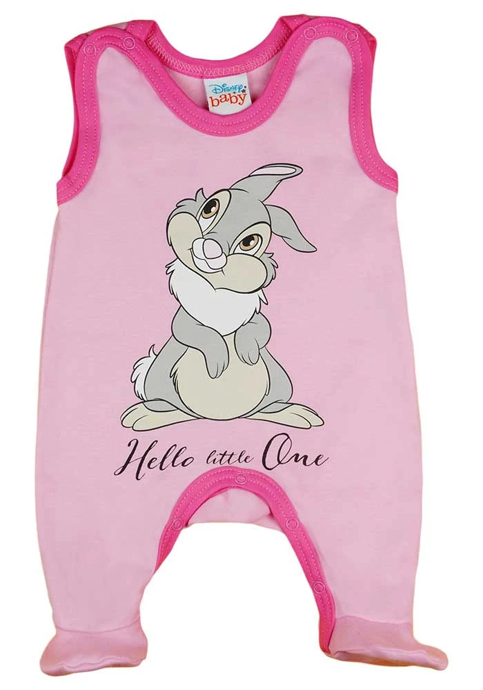 Engedd meg, hogy bemutassuk a Thumper nyuszi mintás ujjatlan baba rugdalózónkat, amely minden kis babán jól fog mutatni. Ez a rózsaszínű, 100% pamutból készült darab igazi magyar minőséget képvisel. Az ujjatlan kialakításának köszönhetően ideális nyári viselet, míg a vállon található nikkelmentes patent könnyedén, egyszerűen nyitható és zárható. Az eredeti Disney termék Thumper nyuszi mintája pedig egy cseppet sem hiányozhat belőle. A patent nem tartalmaz nikkelt, így azoknak a babáknak is biztonsággal ajánljuk, akik érzékenyek erre az anyagra. Emellett minősége I. osztályú, ami garantálja a hosszú távú használatot. Dobja fel kisbabája ruhatárát ezzel a vidám, kényelmes rugdalózóval!