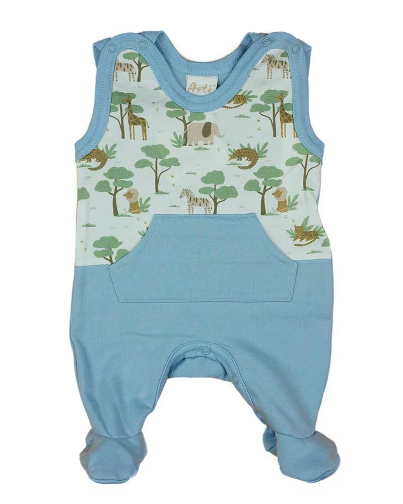 Puha tapintású, bolyhos belsővel készült, világoskék színű, ujjatlan baba rugdalózó, amelyen cuki állatos minta díszeleg. A ruhadarab a babák kényelmét szem előtt tartva készült, hogy a kicsik a lehető legkellemesebben érezzék magukat viselése közben. Külön praktikus funkciója, hogy a lábközött patentos megoldással rendelkezik, így a pelenkázás gyerekjátékká válik. Rövid és hosszú ujjú bodyval is kombinálható, így a kisebb-nagyobb hőingadozások sem jelentenek gondot. Az anyagösszetétel 65% pamut és 35% poliészter, így a rugdalózó nem csak stílusos, de strapabíró is. A termék minősége I. osztályú, és a magyar gyártás garantálja a megbízható minőséget. A patentok nikkelmentesek, így az arra érzékeny babák sem fognak allergiás reakciót tapasztalni.
