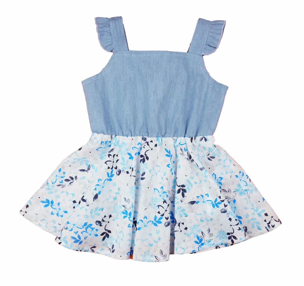 Ez az ujjatlan, fodros vállú kislány ruha valódi bűbájos viselet lesz kislányod számára. A kék szín és a virágos minta igazán friss és vidám látványt nyújt, tökéletes választás nyári napokra, vagy családi összejövetelekre. A ruha 100% pamut anyagból készült, amely garantálja a kényelmet és a tartósságot, viszont érdemes figyelembe venni, hogy vasalást igényel. A pamut anyag azonban gyönyörű tartást ad a ruhának, amely így még szebb lesz rajta. Magyarországon készült minőségi termékről van szó, amely az I. osztályba sorolható. Bízd magad a magyar minőségre, és lepd meg kislányodat ezzel a csodálatos ruhával!