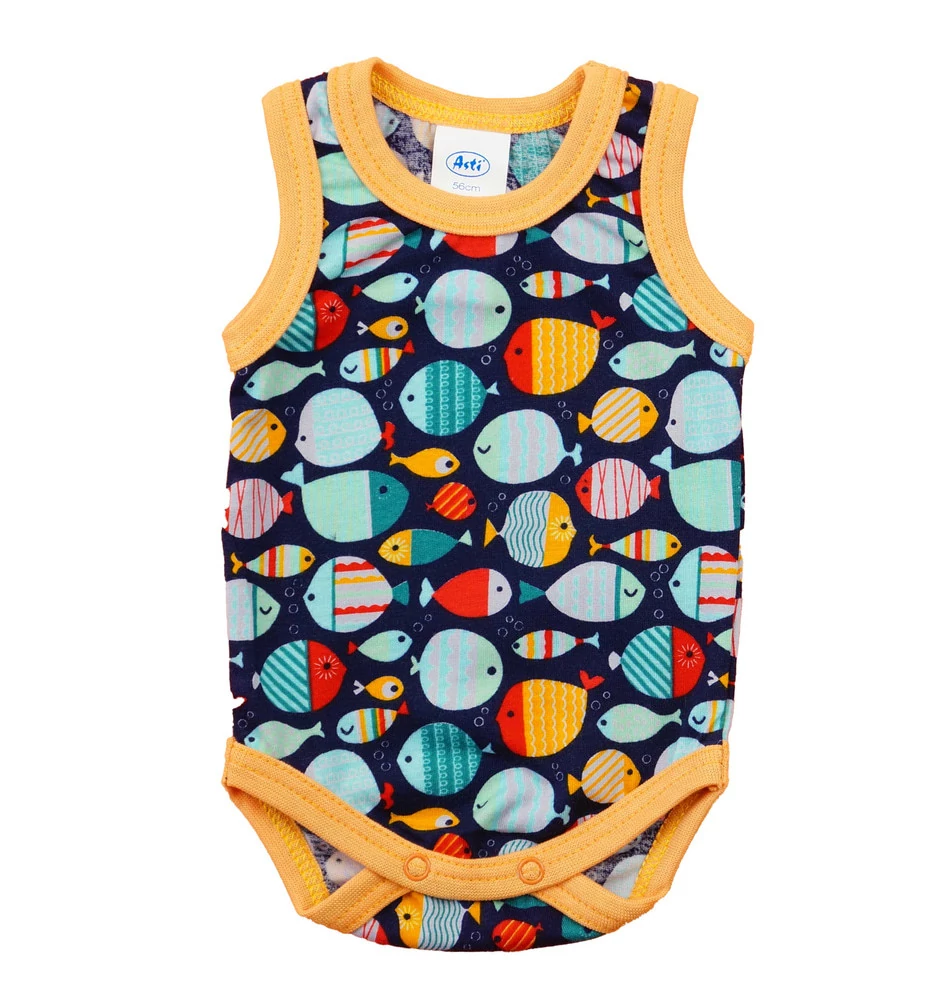 Ujjatlan mintás nyári baba body Nyári kalandokhoz készült ez az ujjatlan, mintás baba body! Az aprócska kalandoroknak kényelmet és stílust kölcsönöz, miközben a vékony pamut anyaga gondoskodik a hűsítő komfortról a meleg napokon. A minőségi, 100% pamutból készült termék hazánkban készül, így biztosan szolgálja majd kisbabád kényelmét és egészségét. Ezzel a bodyval minden nap vidám és gondtalan lesz, hiszen a minőségi anyagok mellett a praktikus kialakítás is a babák és szülők életét könnyíti meg. A mintás design pedig igazán divatos és játékos megjelenést biztosít a nyári napokon.