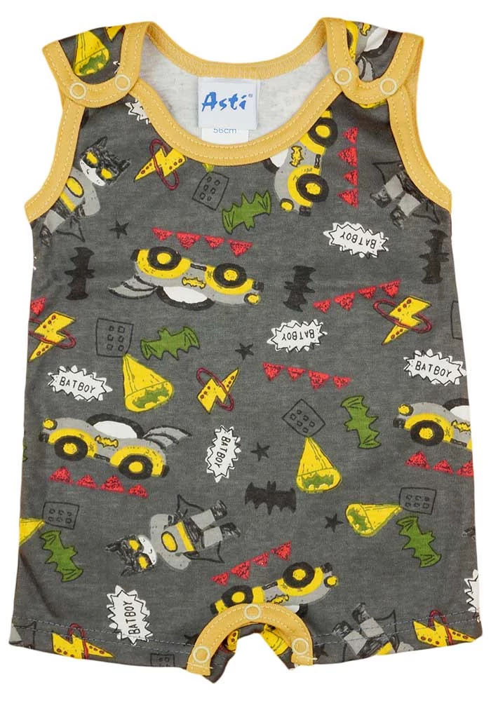 Kisfiad hősi alakja lesz ebben a Batman mintás, ujjatlan napozóban! Könnyed szürke színű, 100% pamutból készült ruha, amely a legforróbb napokon is kényelmes viseletet biztosít. Az ujjatlan kialakításnak és a vállon található patentnak köszönhetően a napozó könnyen fel- és levehető. A lábánál található patentok segítségével pedig pillanatok alatt lecserélheted kisbabád pelusát. Ez a minőségi magyar termék nikkelmentes patenttal készült, így nem vált ki allergiás reakciót az erre érzékeny babáknál. Szerezd be ezt a kedves darabot, amelyben kisfiad igazi szuperhőssé válhat!