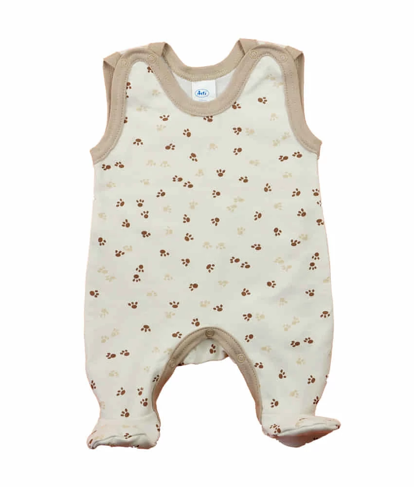 Ujjatlan rugdalózó –tappancsos mintával Ez a vidám, ujjatlan rugdalózó a hűvösebb nyári napok tökéletes darabja. A könnyű, vékony futter anyag kényelmes viseletet biztosít a babának egész nap, miközben a tappancsos végnyomott minta játékos hangulatot csempész a mindennapokba. A nikkelmentes patentok kímélik a baba érzékeny bőrét, a láb között patentos kialakítás pedig megkönnyíti a pelenkacserét – praktikus és szülőbarát megoldás. Főbb jellemzők: •Ujjatlan kialakítás – ideális a nyári időszakra •Vékony, puha futter anyag •Mókás, tappancsos végnyomott minta •Nikkelmentes patentok – bőrbarát megoldás •Patent a lábak között – egyszerű pelenkacsere Ez a rugdalózó nemcsak kényelmes, hanem garantáltan mosolyt csal mindenki arcára – vidám napokhoz vidám ruhadarab Minőségi magyar termék Anyaga: 100% pamut Minőség: I. osztály