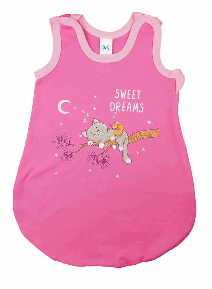 Édes álmodozás az éjszaka bármely szakaszában egy kényelmes, ujjatlan pamut hálózsákkal, melyet világos pink színben és aranyos cicás mintával kínáljuk. Az oldalt található cipzár megkönnyíti a babád öltöztetését, míg a vállon lévő nikkelmentes patentek biztosítják a tartósságot és a babák maximális kényelmét. Ez a vékony hálózsák tökéletes választás a melegebb éjszakákra, a 1 TOG érték pedig segít abban, hogy a legjobb döntést hozd meg a hőmérséklet és az időjárás függvényében. A hálózsák 100% pamutból készül, amely nem csak kiváló minőségű, de a bőrével érintkezve is lágy és kényelmes. Az allergiás reakciókat okozó nikkeltől mentes patentok pedig extra védelmet biztosítanak az érzékeny babáknak. A termék Magyarországon készül, így biztos lehetsz benne, hogy a legmagasabb minőségi követelményeknek is megfelel. Vigyázz a babád éjszakai komfortjára ezzel a magas minőségű, cicás mintás hálózsákkal.