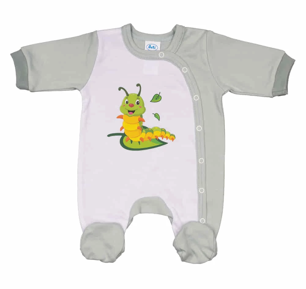 Vékony, pamut, elöl patentos kisfiú rugdalózó Hernyó mintával Praktikus és kényelmes viselet ez a nagyon vagány hernyó mintával nyomott baba rugdalózó. Elöl patentos megoldás, mely megkönnyíti a peluscserét és az öltöztetést. Az egyik legjobb megoldás különösen újszülötteknél és az első néhány hónapban. Minőségi, 100% pamut bababarát anyagból készült, ami jól mosható, könnyen kezelhető. Minőségi magyar termék Anyaga: 100% pamut Minőség: I. osztály A termék nikkelmentes patenttal készül. A patent nem tartalmaz nikkelt, ezért nem vált ki allergiás reakciót az erre érzékeny babáknál.