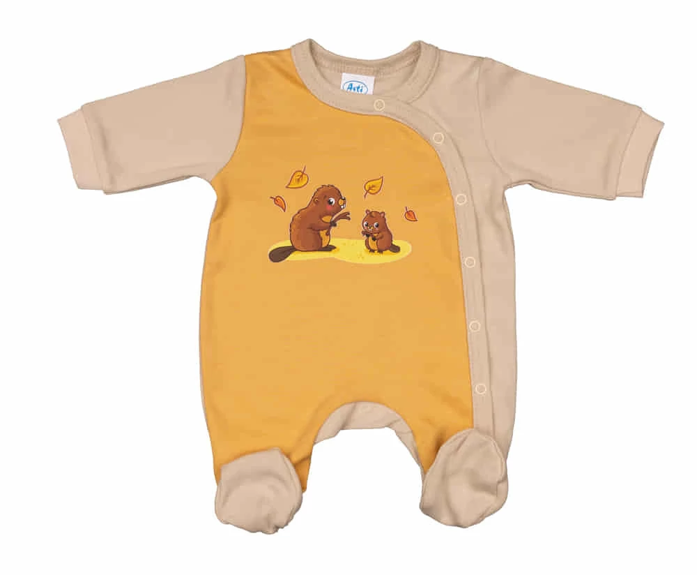 Vékony, pamut, elöl patentos kisfiú rugdalózó Hód mintával Praktikus és kényelmes viselet ez a nagyon vagány hód mintával nyomott baba rugdalózó. Elöl patentos megoldás, mely megkönnyíti a peluscserét és az öltöztetést. Az egyik legjobb megoldás különösen újszülötteknél és az első néhány hónapban. Minőségi, 100% pamut bababarát anyagból készült, ami jól mosható, könnyen kezelhető. Minőségi magyar termék Anyaga: 100% pamut Minőség: I. osztály A termék nikkelmentes patenttal készül. A patent nem tartalmaz nikkelt, ezért nem vált ki allergiás reakciót az erre érzékeny babáknál.