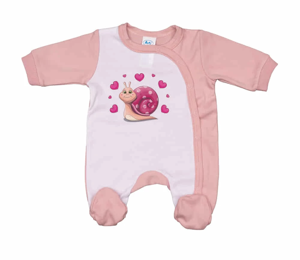 Vékony, pamut, elöl patentos kislány rugdalózó Csiga mintával Praktikus és kényelmes viselet ez a nagyon cuki csiga mintával nyomott baba rugdalózó. Elöl patentos megoldás, mely megkönnyíti a peluscserét és az öltöztetést. Az egyik legjobb megoldás különösen újszülötteknél és az első néhány hónapban. Minőségi, 100% pamut bababarát anyagból készült, ami jól mosható, könnyen kezelhető. Minőségi magyar termék Anyaga: 100% pamut Minőség: I. osztály A termék nikkelmentes patenttal készül. A patent nem tartalmaz nikkelt, ezért nem vált ki allergiás reakciót az erre érzékeny babáknál.