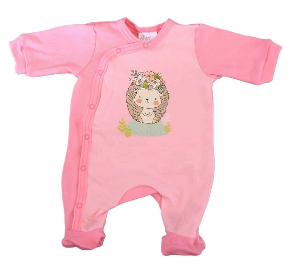 Vékony, pamut, elöl patentos kislány rugdalózó Sünis mintával