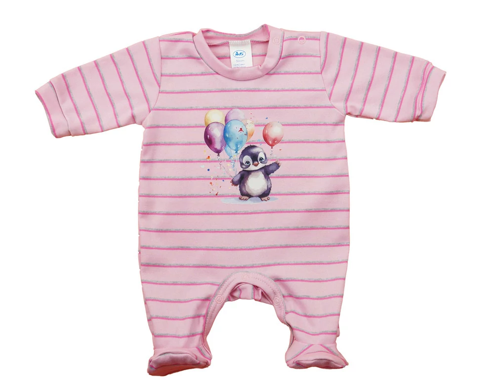 Vékony, pamut rugdalózó Praktikus és kényelmes viselet ez a csíkos alapayagól készült cuki mintával nyomott baba rugdalózó. Vállán patentos, így megkönnyíti a picik öltöztetését. A lába közötti patentos megoldás a peluscserénél nagy segítség Az egyik legjobb megoldás különösen újszülötteknél és az első néhány hónapban. Minőségi, 100% pamut bababarát anyagból készült, ami jól mosható, könnyen kezelhető. Minőségi magyar termék Anyaga: 100% pamut Minőség: I. osztály A termék nikkelmentes patenttal készül. A patent nem tartalmaz nikkelt, ezért nem vált ki allergiás reakciót az erre érzékeny babáknál.