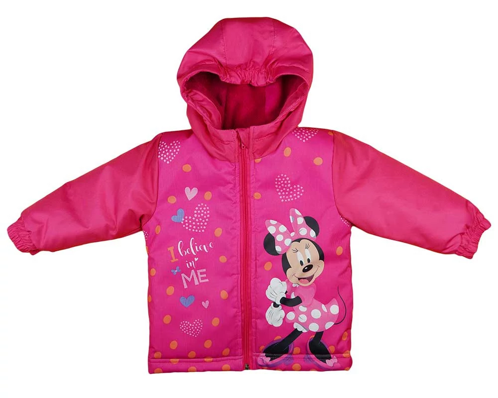 A sötét pink színű, Minnie egér mintával díszített kabát tökéletes választás a hideg hónapokra. Ez a gyönyörű kabát nem csak a stílusos megjelenést biztosítja, de a kis hölgyeket melegen is tartja a polár bélésnek köszönhetően. A kapucni segít megóvni a hidegtől, míg a vízlepergetős anyag gondoskodik arról, hogy a kabát száraz maradjon még esős időben is. Az oldalt elhelyezett zsebekben pedig bőven elférnek a kislányok kincsei. Emellett a kabát egy eredeti Disney termék, ami garantálja a kiváló minőséget. Anyaga 100% poliészter, ami tartós és könnyen tisztítható. Ez a kabát nem csak praktikus, de nagyon cuki is! A kabátot Andrea Kft. gyártja Magyarországon, az EU-ban, így biztos lehet benne, hogy egy minőségi magyar terméket vásárol.