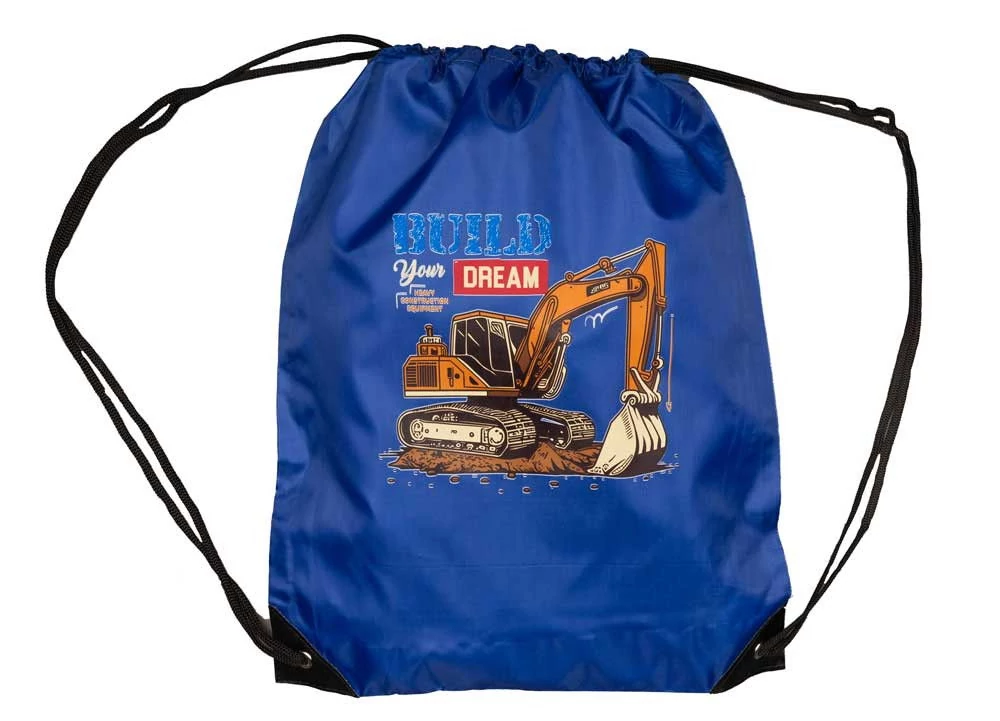 Zsinóros tornazsák Buldózer mintával a zsinóros tornazsák kicsi és nagy kalandokhoz egyaránt tökéletes választás. A vidám buldózer minta garantáltan mosolyt csal minden kis arcra. A dupla húzózsinórral könnyedén zárható és nyitható, így a legkisebbek is könnyen kezelhetik. Hátizsákként hordva a gyermek könnyedén cipelheti magával az óvodába vagy iskolába. Készült 100% poliészterből, amely strapabíró és könnyen tisztítható anyag. Minden darab Magyarországon készül, így az első osztályú minőség garantált.